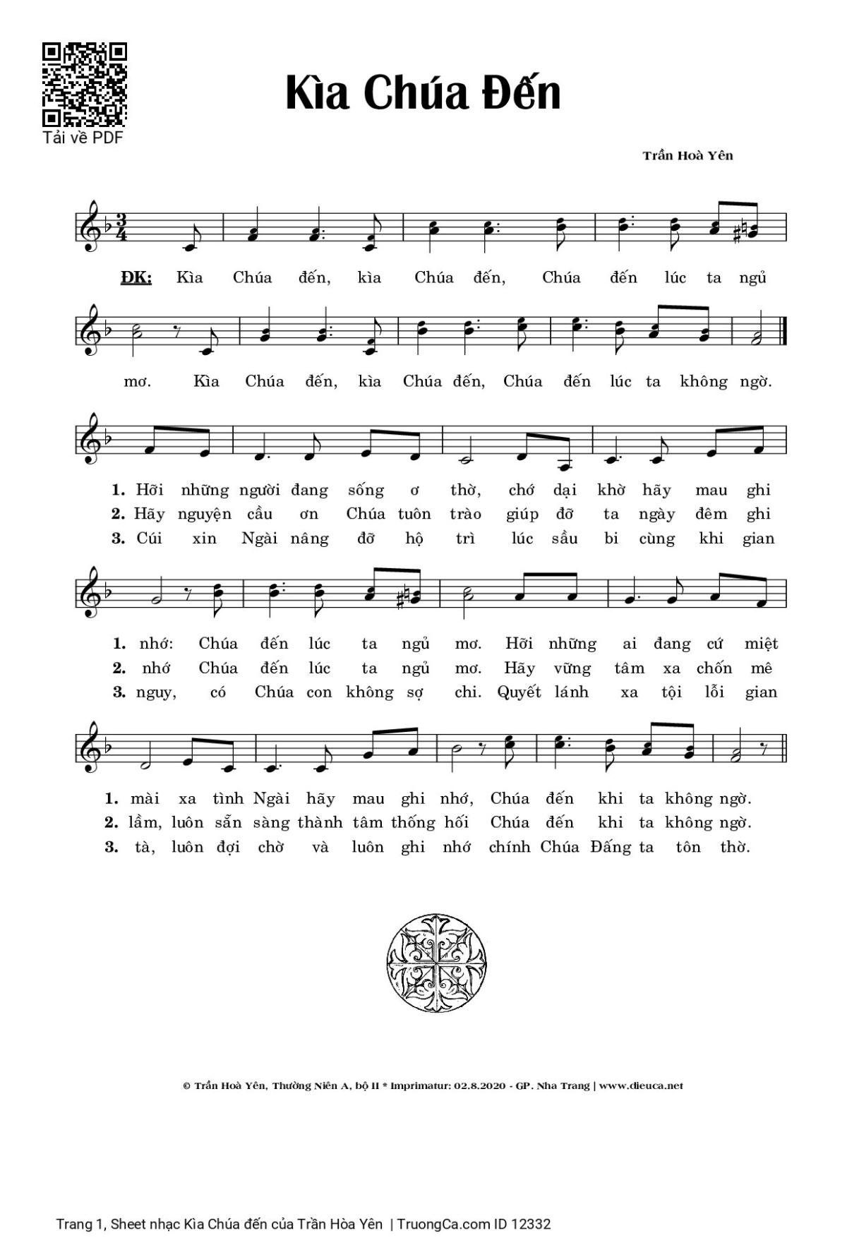 Điệp khúc: Kìa Chúa đến, kìa Chúa đến Chúa đến lúc ta ngủ mơ. Kìa Chúa đến, kìa Chúa đến, Chúa đến lúc ta không ngờ.