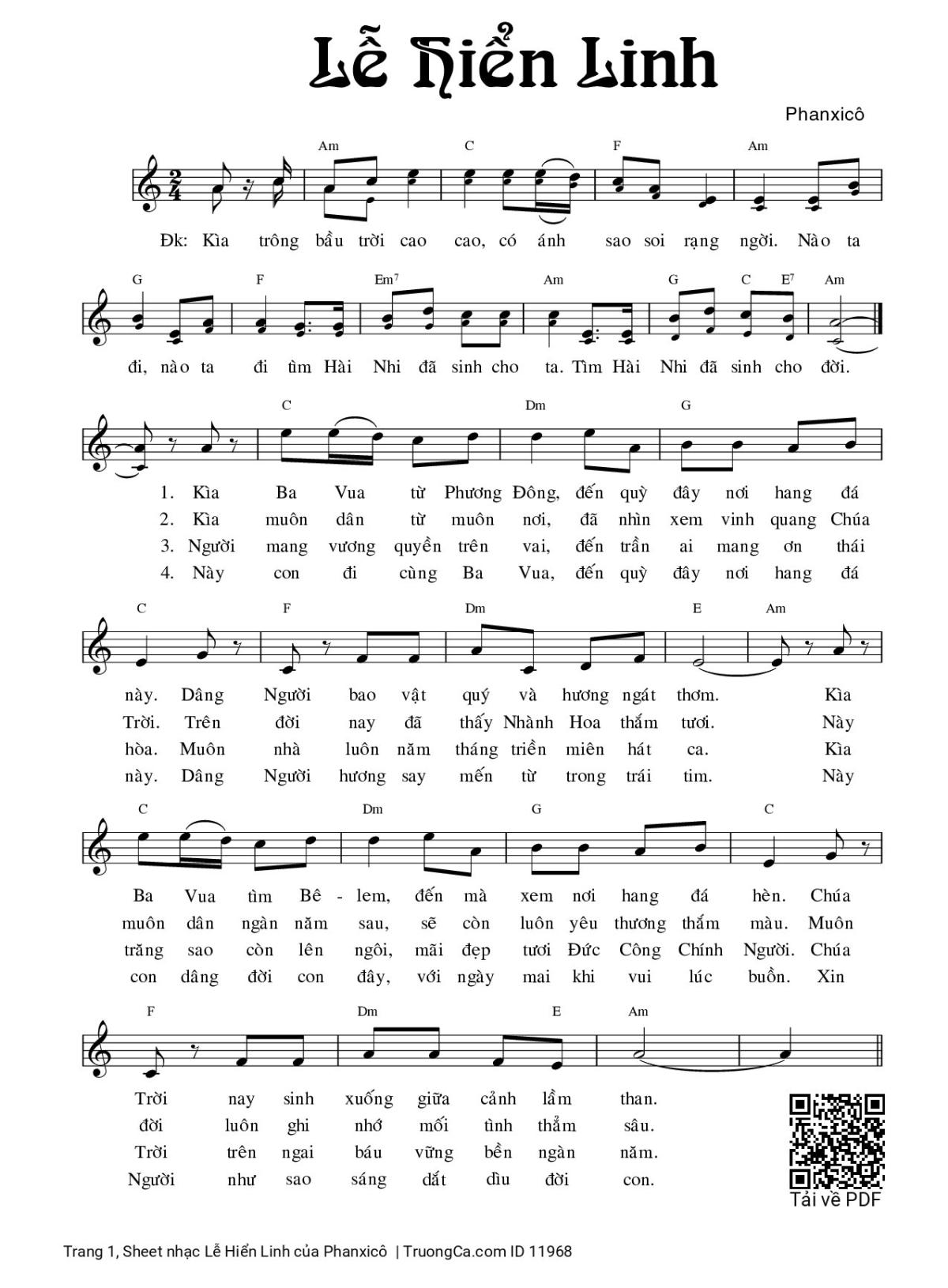 The Videos/audios Lễ Hiển Linh by Phanxicô were embed from Youtube, Musescore or the other 3rd links. Videos are subject to 3rd's copyright control and may be removed by YouTube's copyright rules and 3rd's policies or maybe included advertisements. If you cannot access to these songs, this mean that have been removed.