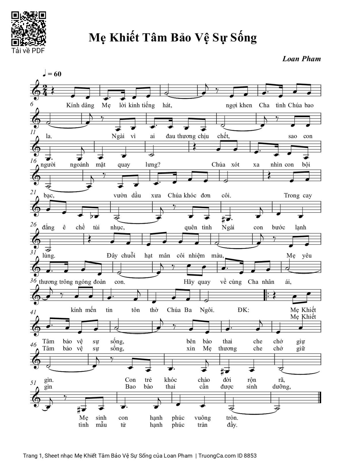 More similar sheets PDF Mẹ Khiết Tâm Bảo Vệ Sự Sống: