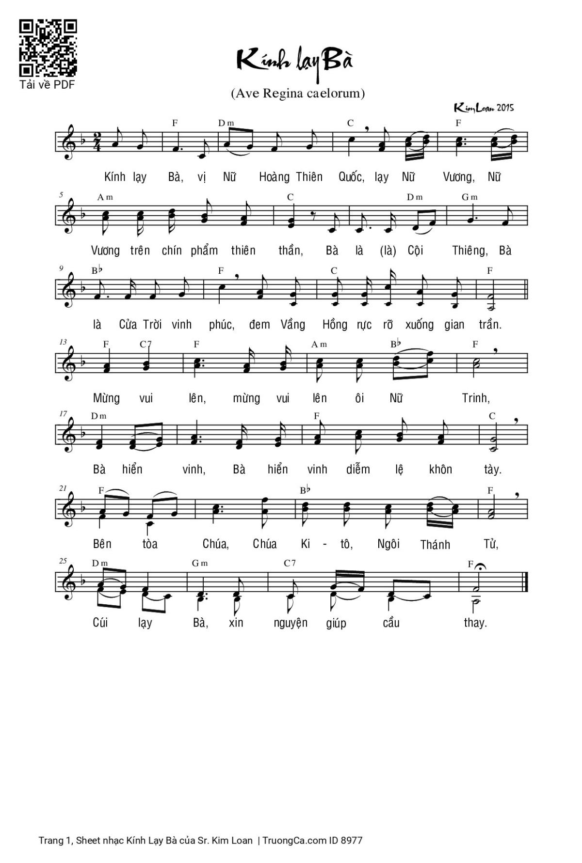 Transposition is the process of moving a song's melody and chords up or down in pitch by a constant interval. The direction of the transposition tool is indicated by a plus (+) sign for up and a minus (-) sign for down. Hover mouse over chords signs to see the chords chart of Kính Lạy Bà song.
