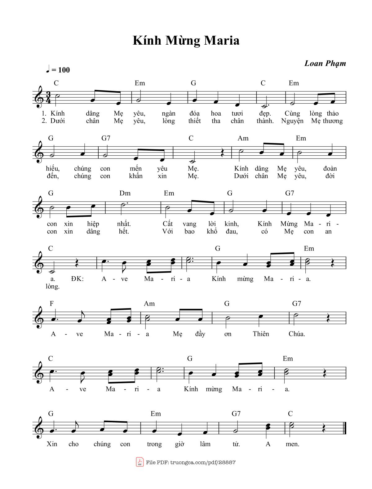 Điệp khúc: A - ve Ma - ri - a Kính mừng Ma - ri - a.