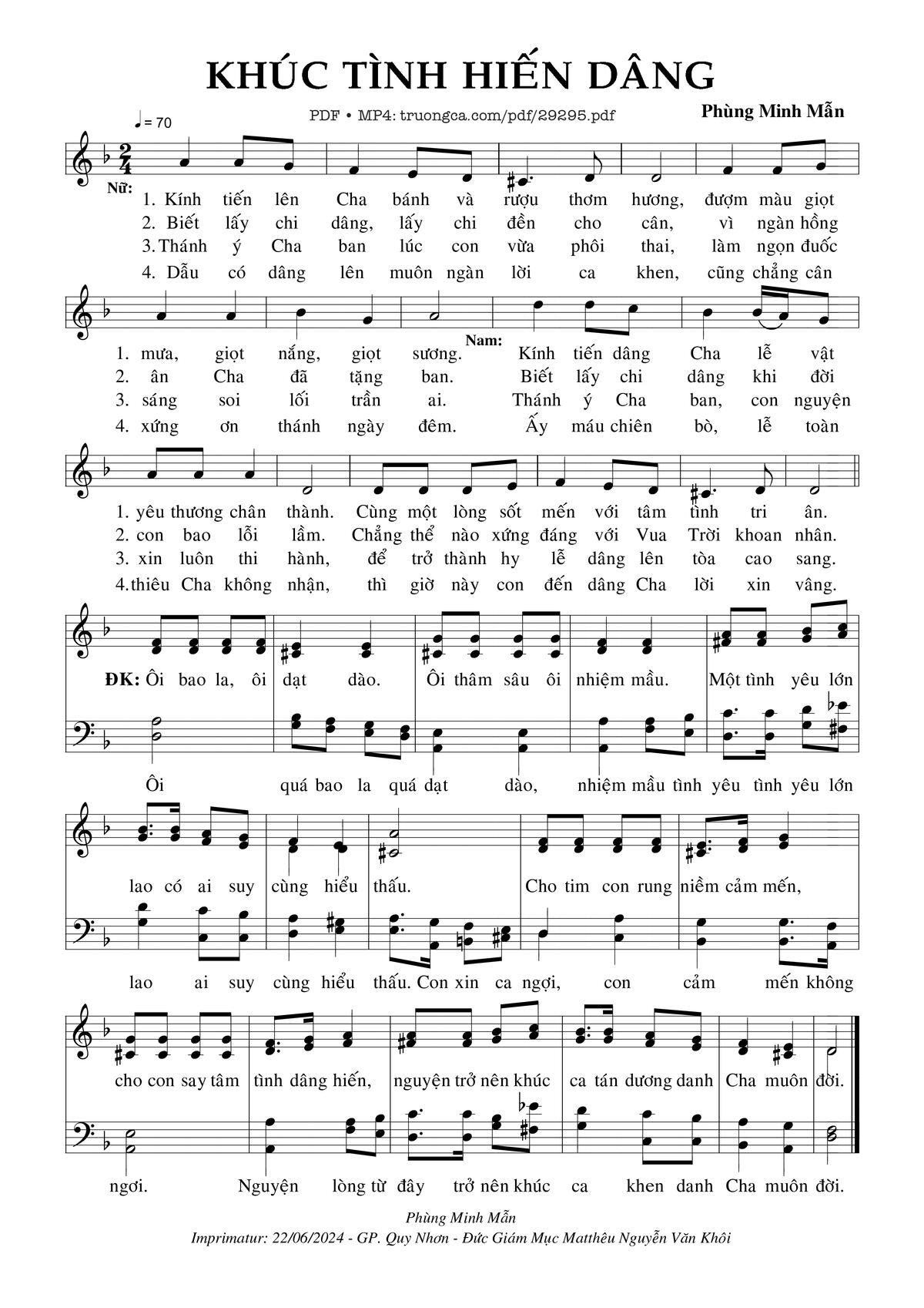 Phùng Minh Mẫn Kính tiến lên Cha bánh và rượu thơm hương [PDF] [Sheet] [Lyrics] [Mp4/Midi]