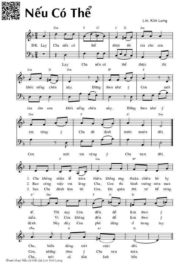 The Videos/audios Nếu có thể by Lm. Kim Long were embed from Youtube, Musescore or the other 3rd links. Videos are subject to 3rd's copyright control and may be removed by YouTube's copyright rules and 3rd's policies or maybe included advertisements. If you cannot access to these songs, this mean that have been removed.