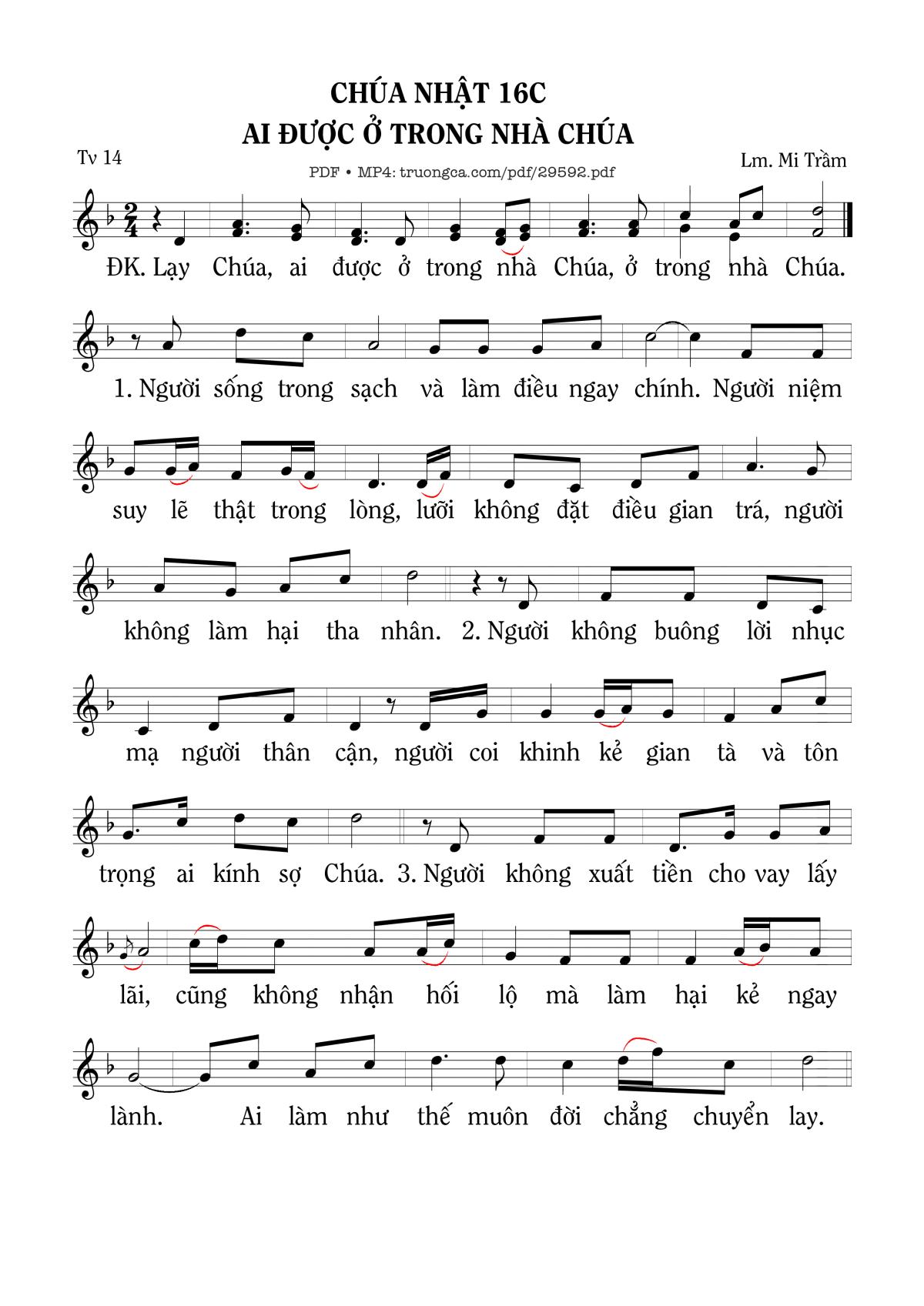 Mi Trầm Lạy Chúa ai đượcở trong nhà Chúa ở trong nhà Chúa [PDF] [Sheet] [Lyrics] [Mp4/Midi]