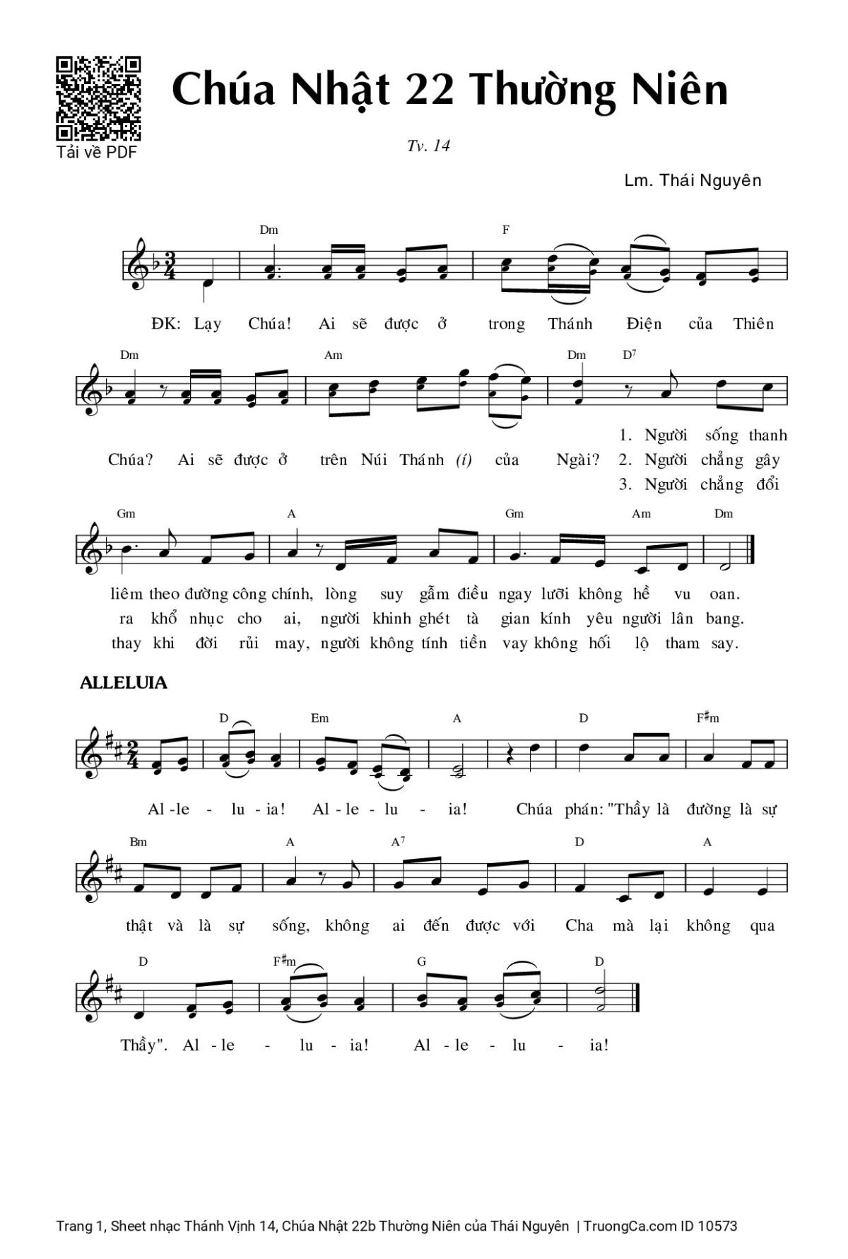 Thái Nguyên Lạy Chúa Ai sẽ được ở trong Thánh Điện của Thiên Chúa [PDF] [Sheet] [Lyrics] [Mp4/Midi]