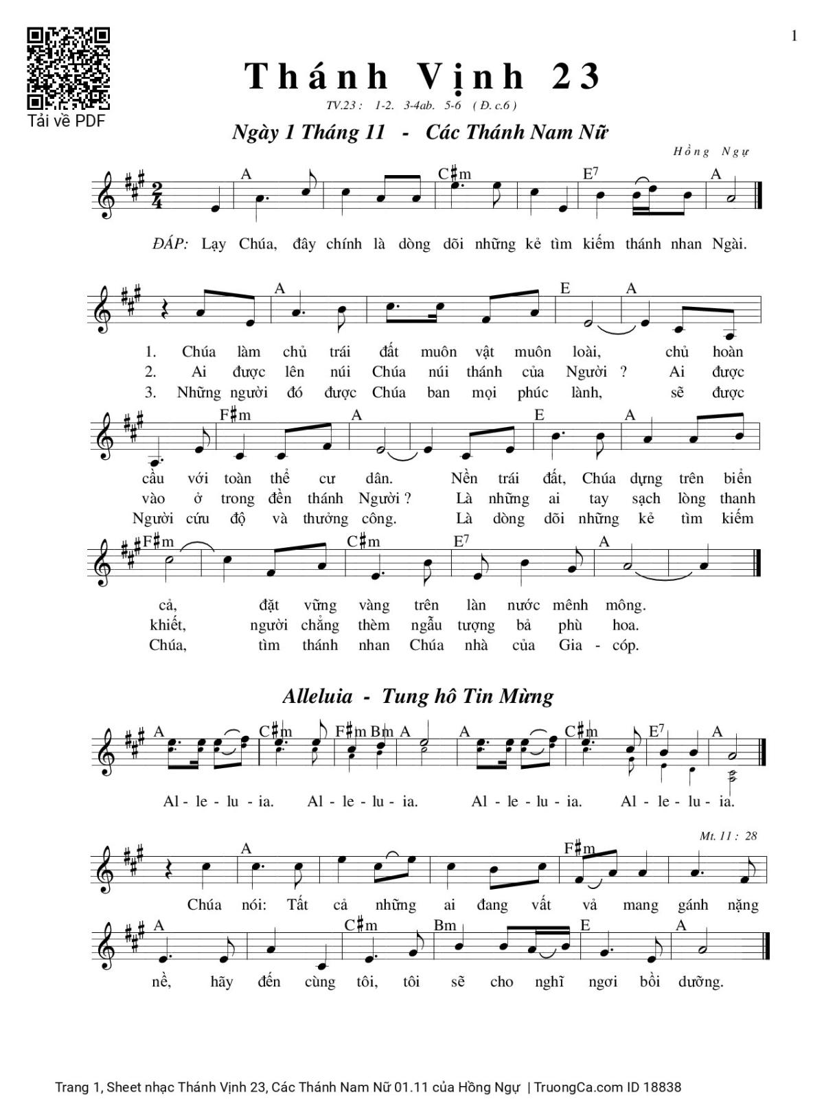 More similar sheets PDF Thánh Vịnh 23, Các Thánh Nam Nữ 01.11: