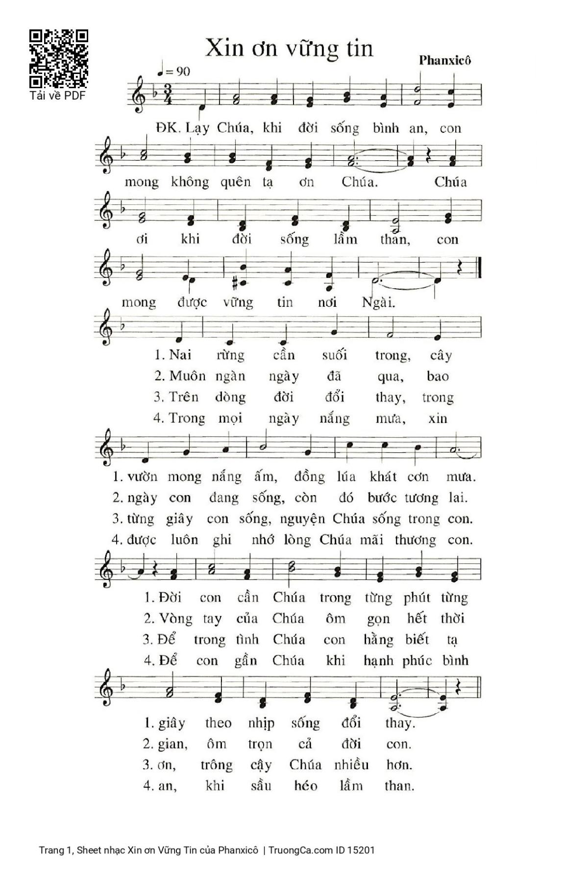 Điệp khúc. Lạy Chúa, khi đời sống bình an, con mong không quên tạ ơn Chúa. Chúa ơi, khi đời sống lầm than, con mong được vững tin nơi Ngài.