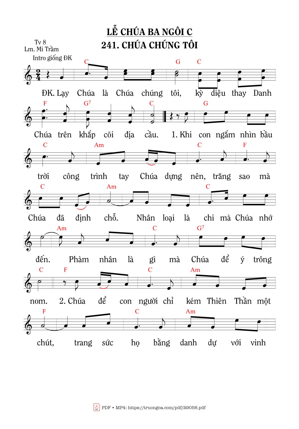 Mi Trầm Lạy Chúa là Chúa chúng tôi kỳ diệu thay Danh Chúa trên khắp cõi địa cầu [PDF] [Sheet] [Lyrics] [Mp4/Midi]