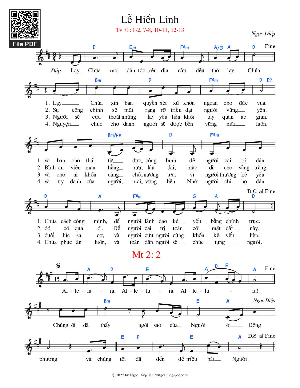 The Videos/audios Thánh Vịnh 71, Lễ Hiển Linh by Ngọc Diệp were embed from Youtube, Musescore or the other 3rd links. Videos are subject to 3rd's copyright control and may be removed by YouTube's copyright rules and 3rd's policies or maybe included advertisements. If you cannot access to these songs, this mean that have been removed.