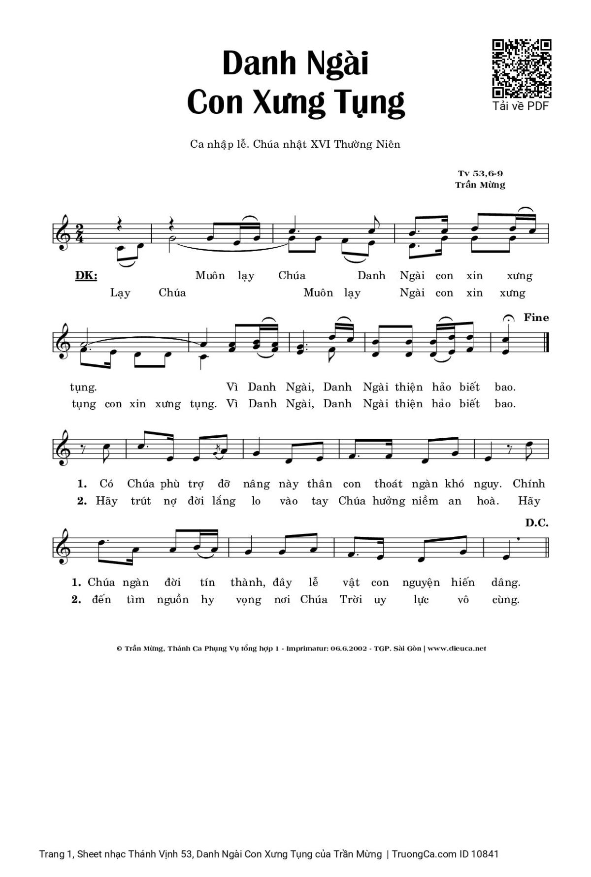 More similar sheets PDF Thánh Vịnh 53, Danh Ngài Con Xưng Tụng: