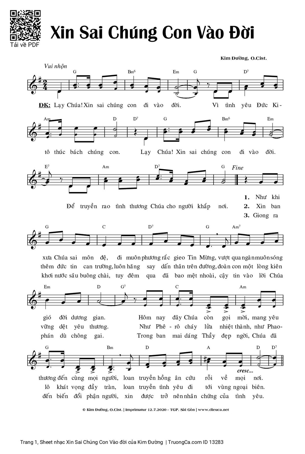 More similar sheets PDF Xin Sai Chúng Con Vào đời: