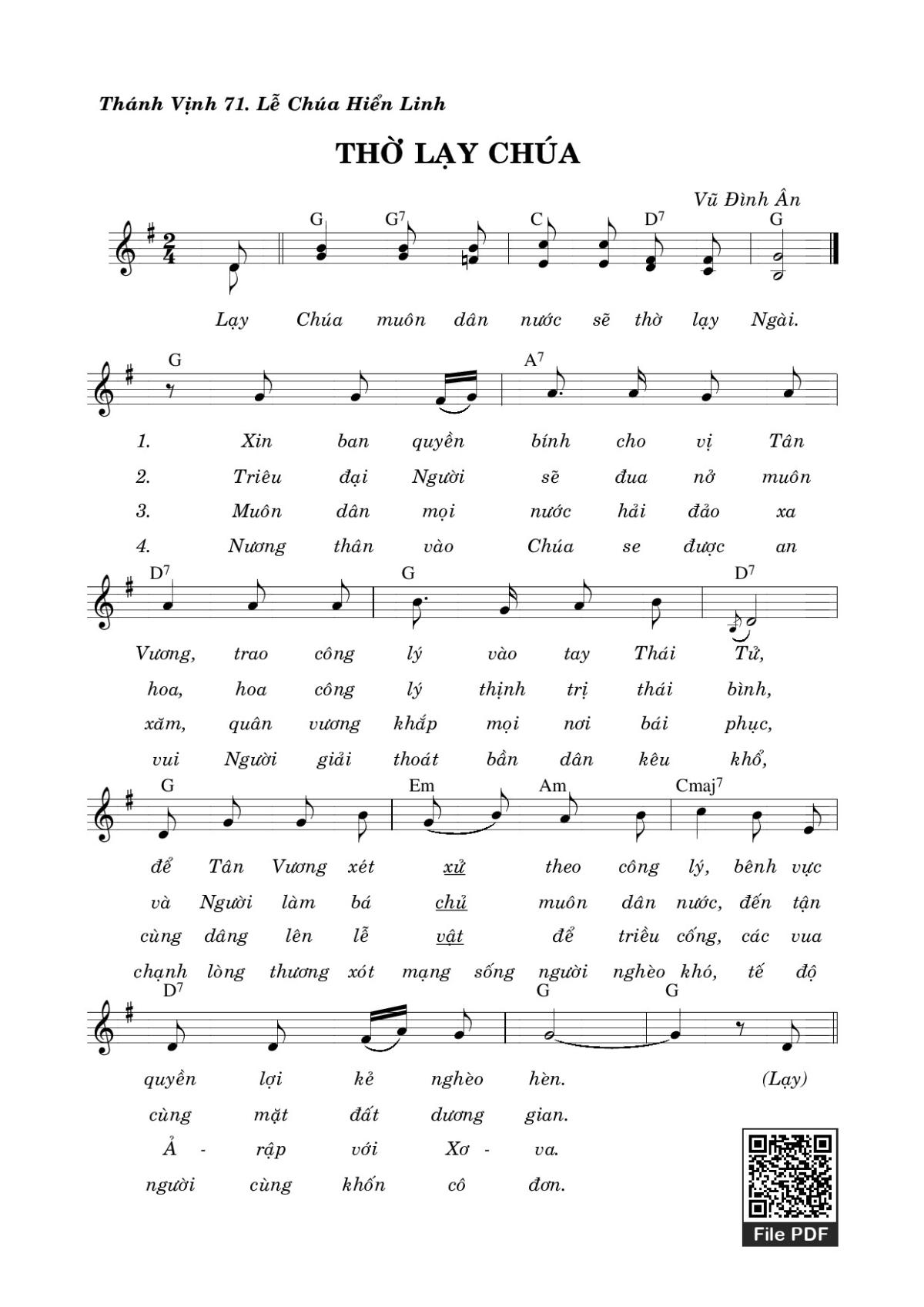 The Videos/audios Thánh Vịnh 71, Thờ Lạy Chúa by Vũ Đình Ân were embed from Youtube, Musescore or the other 3rd links. Videos are subject to 3rd's copyright control and may be removed by YouTube's copyright rules and 3rd's policies or maybe included advertisements. If you cannot access to these songs, this mean that have been removed.