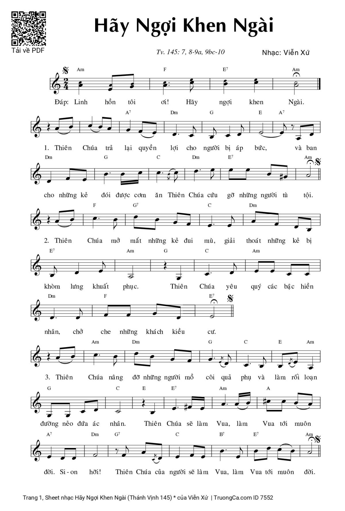 More similar sheets PDF Hãy Ngợi Khen Ngài (Thánh Vịnh 145):
