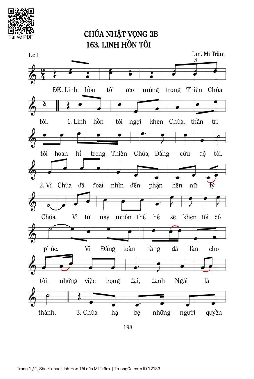 1. Linh hồn tôi ngợi khen Chúa, thần trí tôi hoan hỉ trong Thiên Chúa, Đấng cứu độ tôi.