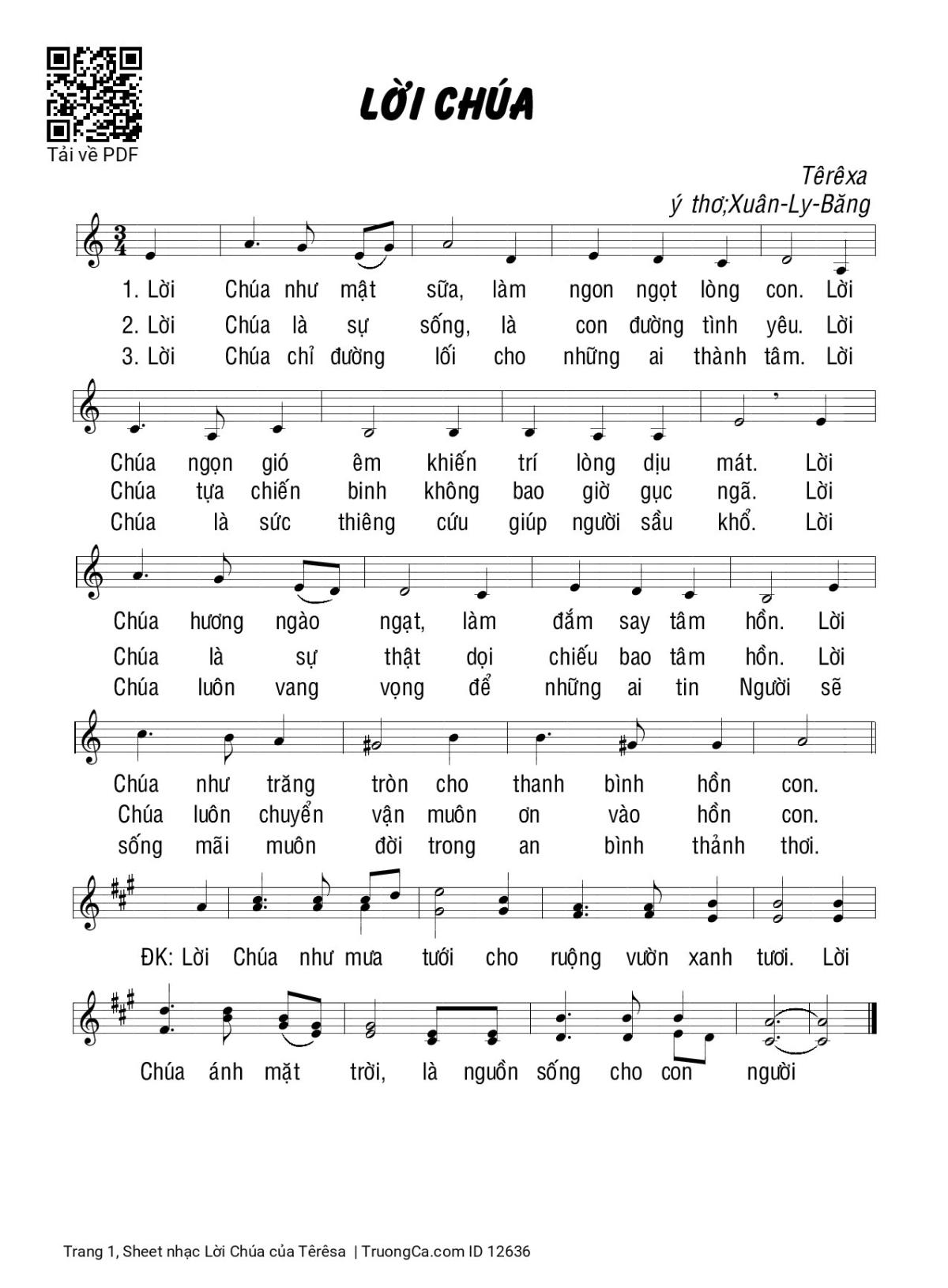Transposition is the process of moving a song's melody and chords up or down in pitch by a constant interval. The direction of the transposition tool is indicated by a plus (+) sign for up and a minus (-) sign for down. Hover mouse over chords signs to see the chords chart of Lời Chúa song.