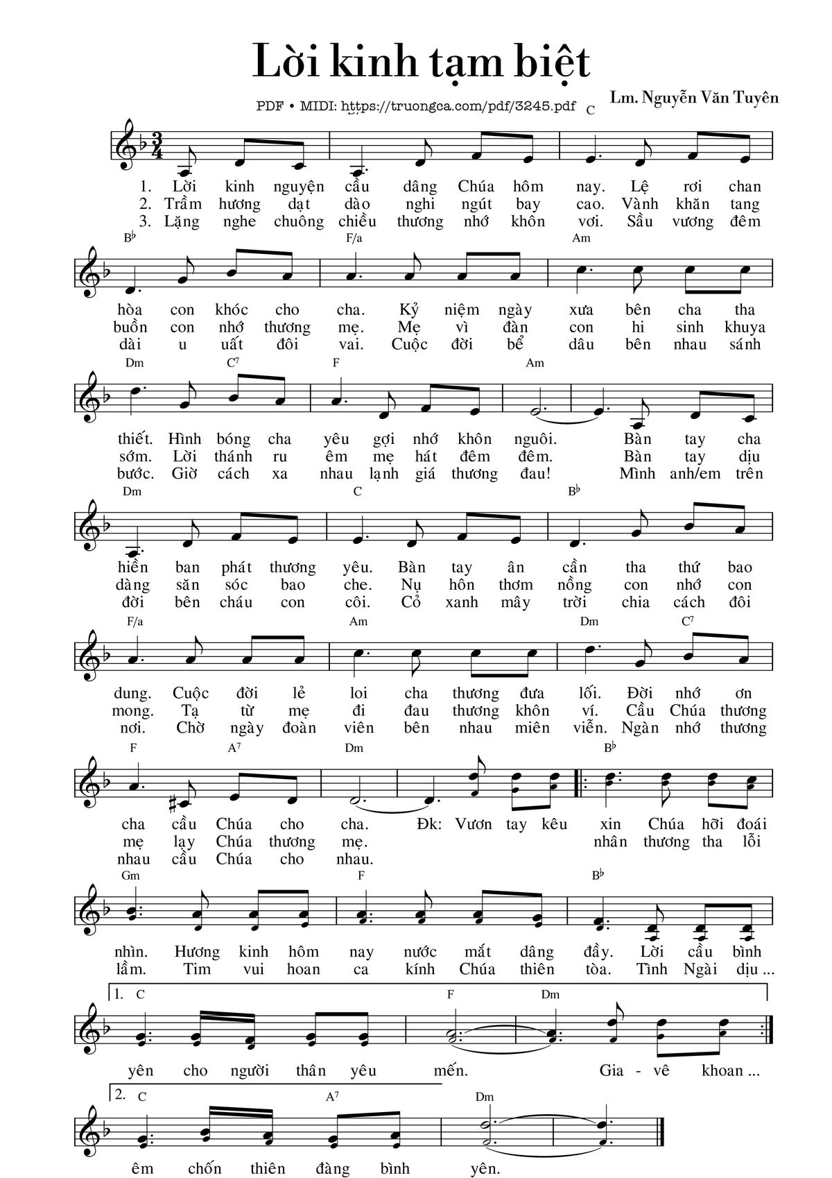Lm. Nguyễn Văn Tuyên Lời kinh nguyện cầu dâng Chúa hôm nay Lệ rơi chan hòa con khóc cho cha [PDF] [Sheet] [Lyrics] [Mp4/Midi]