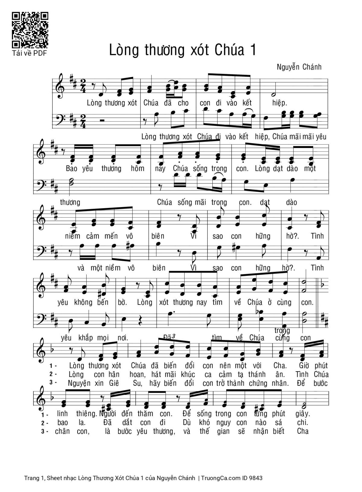 Transposition is the process of moving a song's melody and chords up or down in pitch by a constant interval. The direction of the transposition tool is indicated by a plus (+) sign for up and a minus (-) sign for down. Hover mouse over chords signs to see the chords chart of Lòng Thương Xót Chúa 1 song.