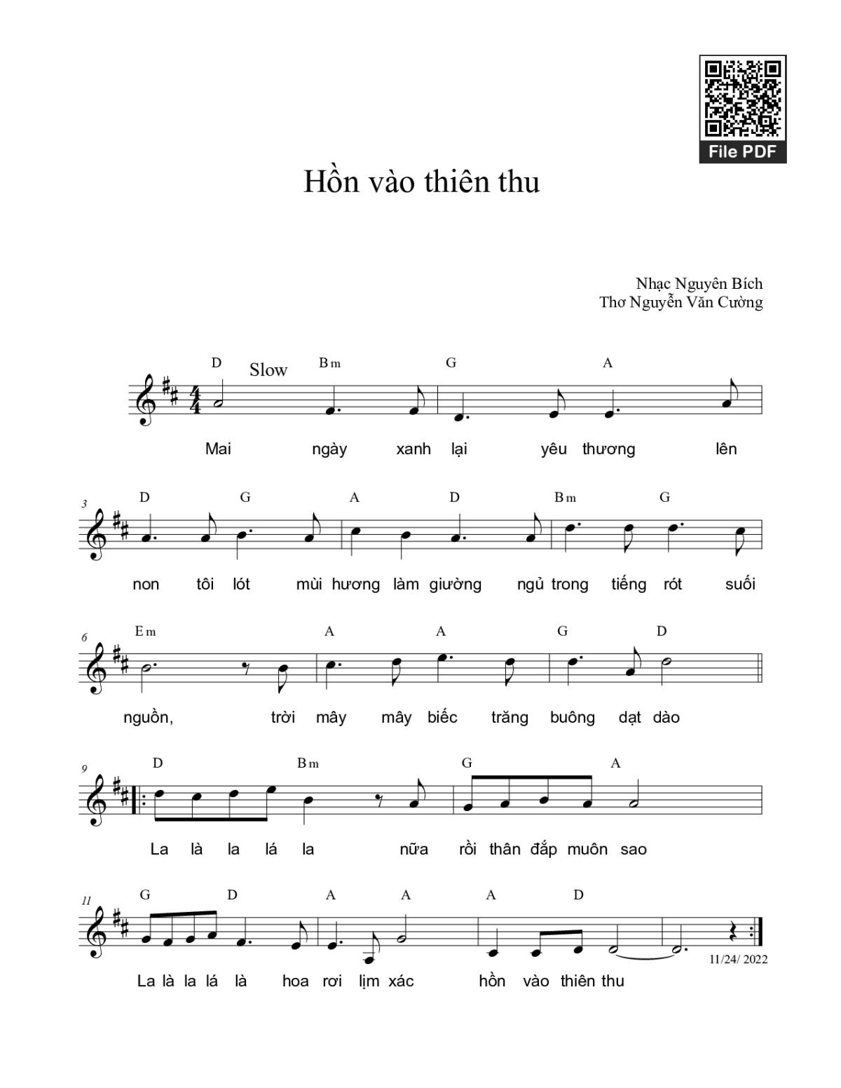 Nguyên Bích Mai ngày xanh lại yêu thương Lên non tôi lót mùi hương làm giường [PDF] [Sheet] [Lyrics] [Mp4/Midi]