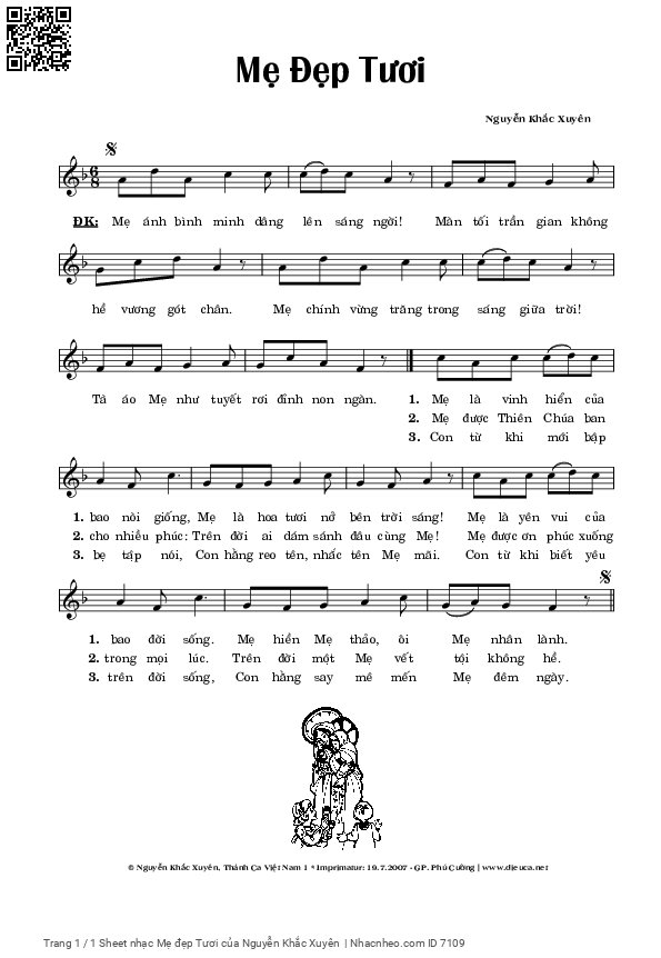 Nguyễn Khắc Xuyên Mẹ ánh bình minh dâng lên sáng ngời Màn tối trần gian không hề vương gót chân [PDF] [Sheet] [Lyrics] [Mp4/Midi]