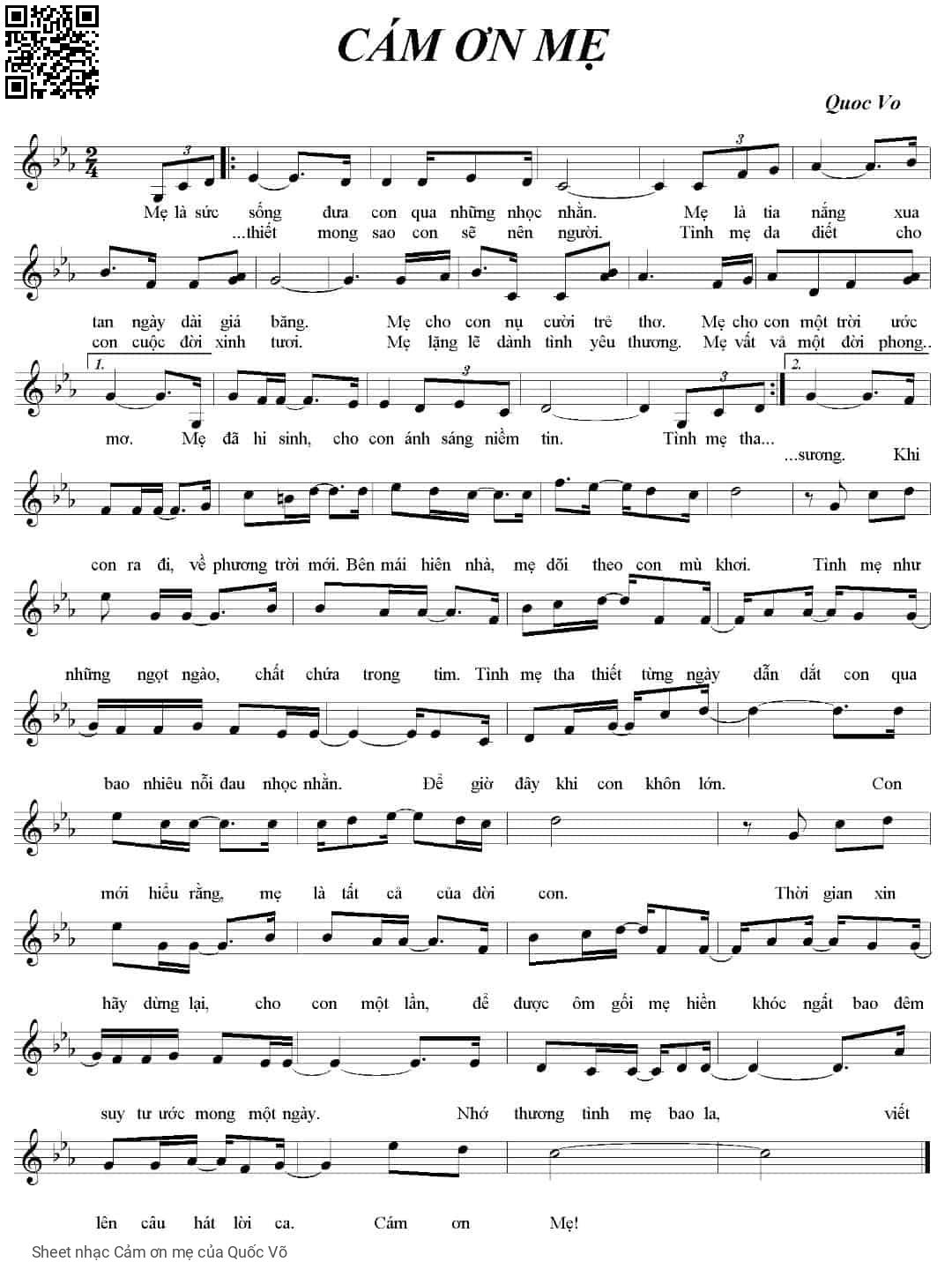 Quốc Võ Mẹ là sức sống đưa con qua những nhọc nhằn [PDF] [Sheet] [Lyrics] [Mp4/Midi]