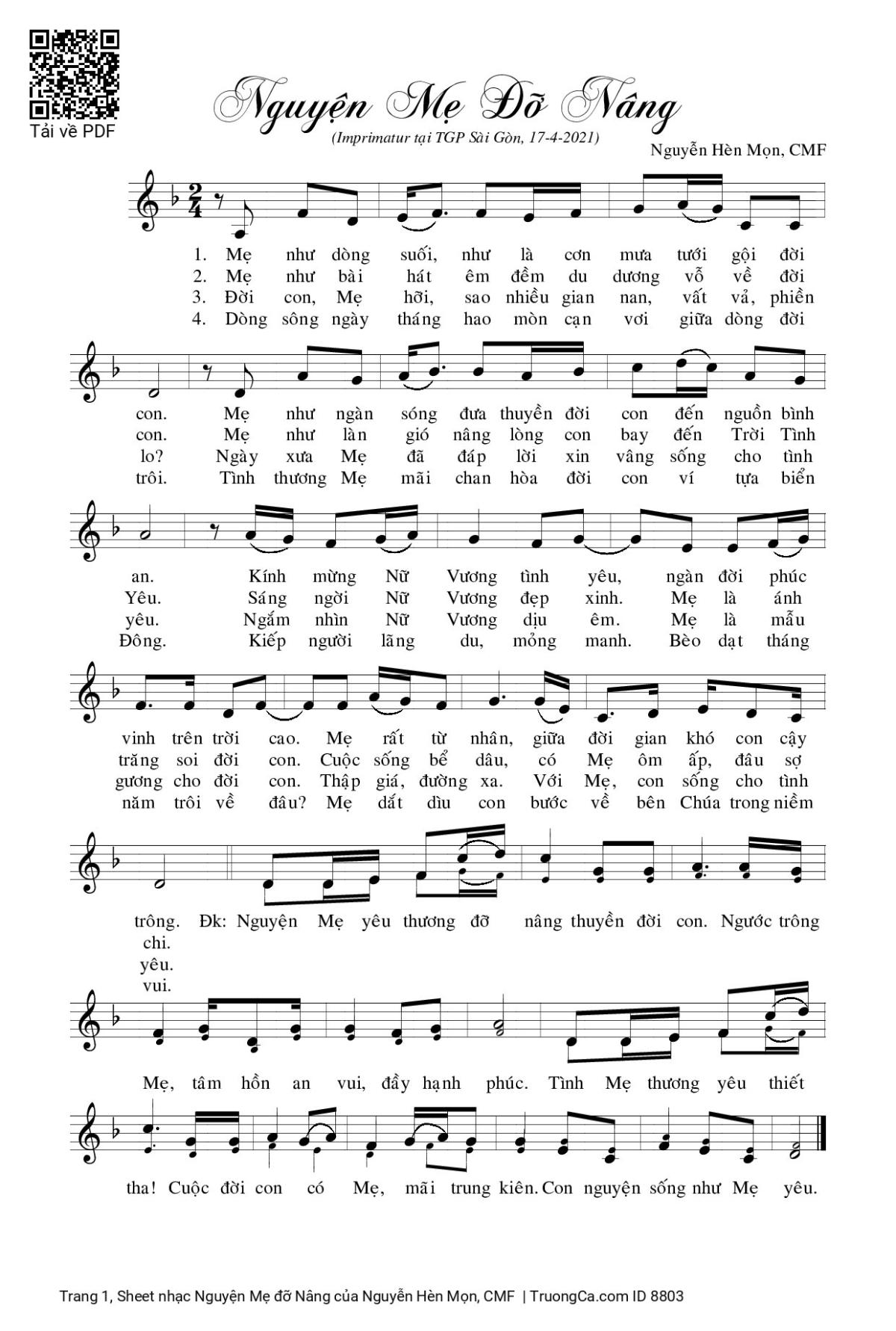 More similar sheets PDF Nguyện Mẹ đỡ Nâng: