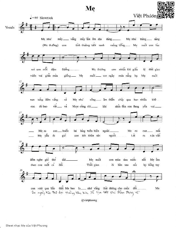 Việt Phương Mẹ như mây vầng mây ấm êm dịu dàng [PDF] [Sheet] [Lyrics] [Mp4/Midi]
