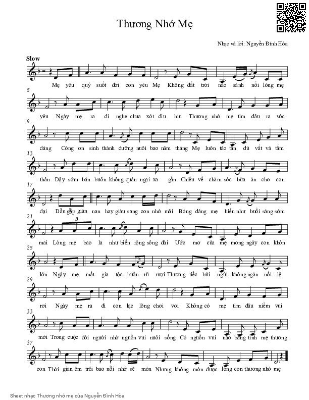 Nguyễn Đình Hòa Mẹ yệu quý suốt đời con yêu mẹ Không đất trời nào sánh nổi lòng mẹ yêu [PDF] [Sheet] [Lyrics] [Mp4/Midi]