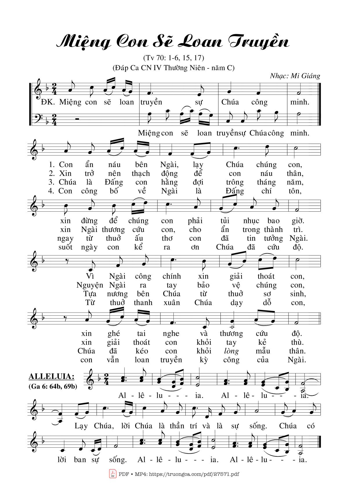 Mi Giáng Miệng con sẽ loan truyền sự Chúa công minh [PDF] [Sheet] [Lyrics] [Mp4/Midi]