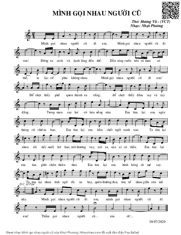 Nhựt Phương Mình gọi nhau người cũ đi em [PDF] [Sheet] [Lyrics] [Mp4/Midi]