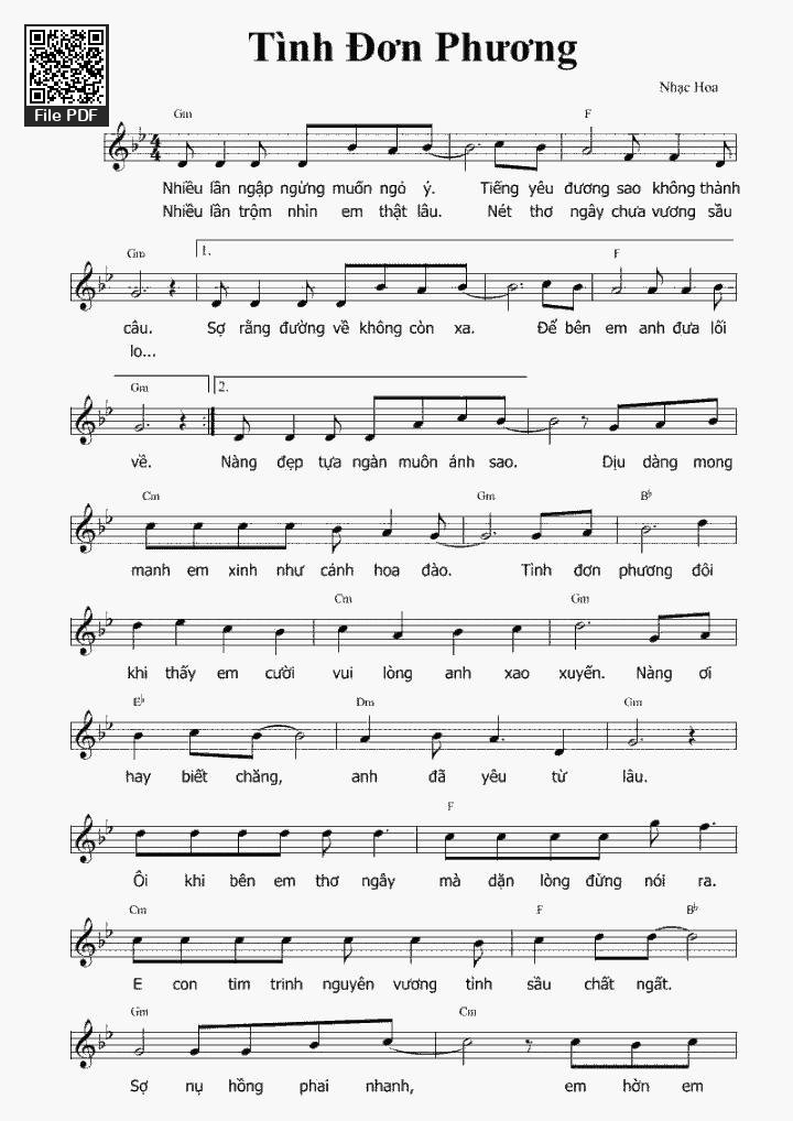 Transposition is the process of moving a song's melody and chords up or down in pitch by a constant interval. The direction of the transposition tool is indicated by a plus (+) sign for up and a minus (-) sign for down. Hover mouse over chords signs to see the chords chart of Tình đơn phương 2 song.
