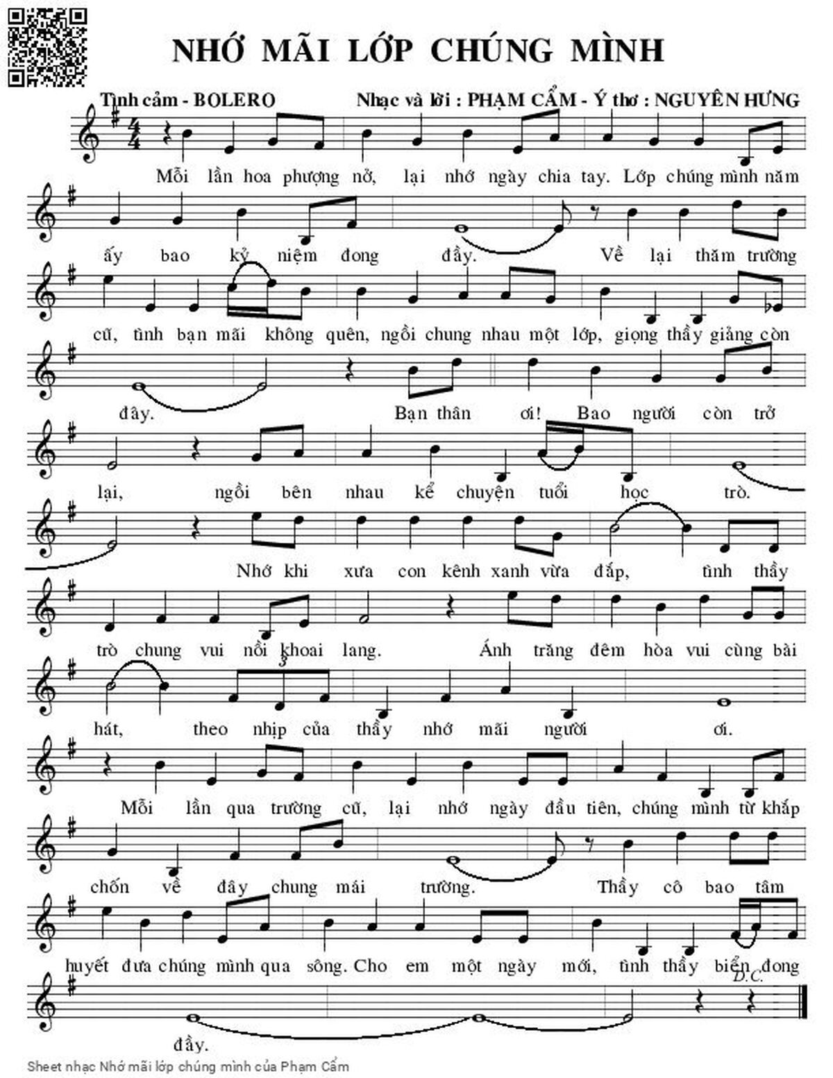 Phạm Cẩm Mỗi lần hoa phượng nở lại nhớ ngày chia tay [PDF] [Sheet] [Lyrics] [Mp4/Midi]
