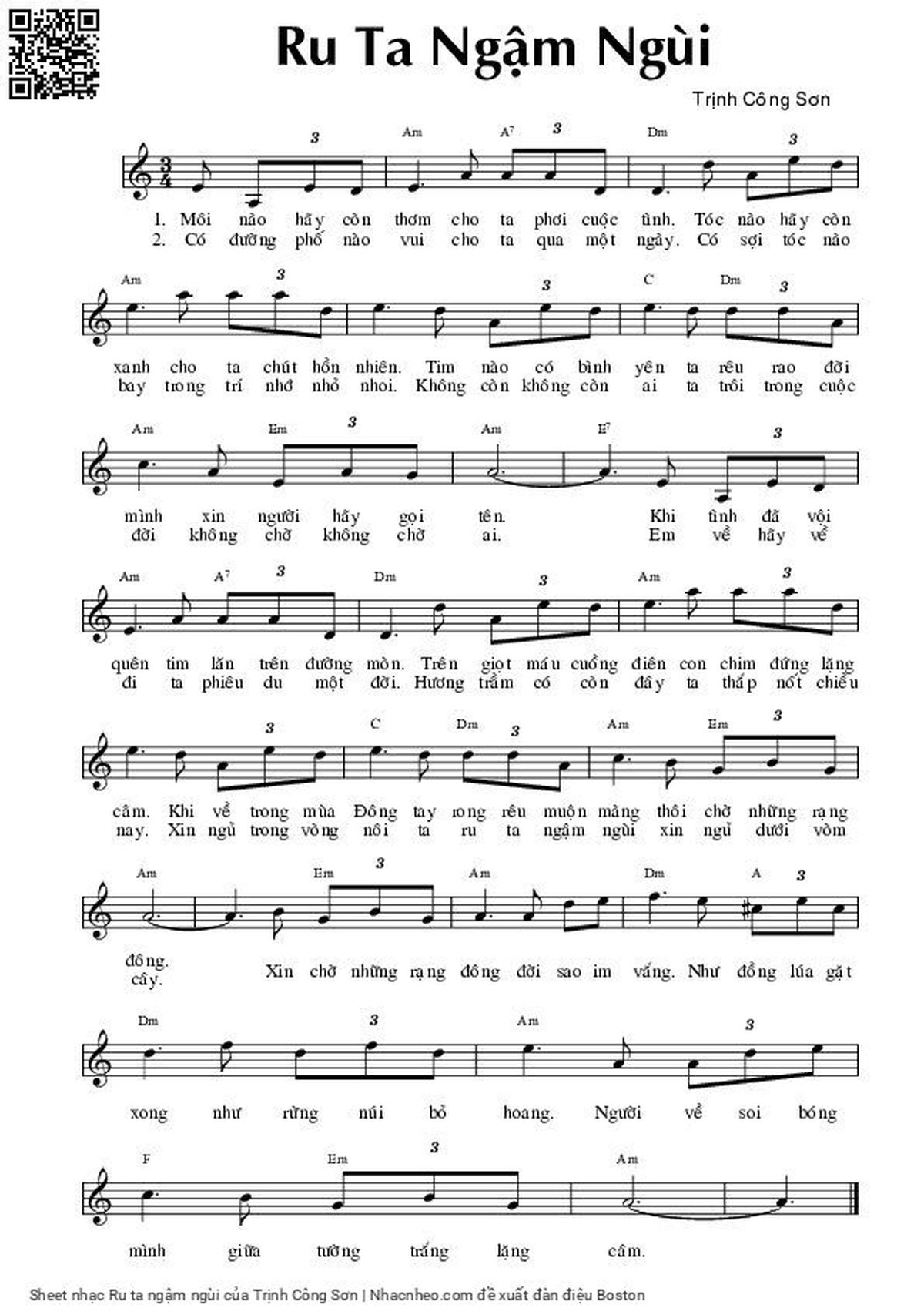 Trịnh Công Sơn Môi nào hãy còn thơm cho ta phơi cuộc tình [PDF] [Sheet] [Lyrics] [Mp4/Midi]
