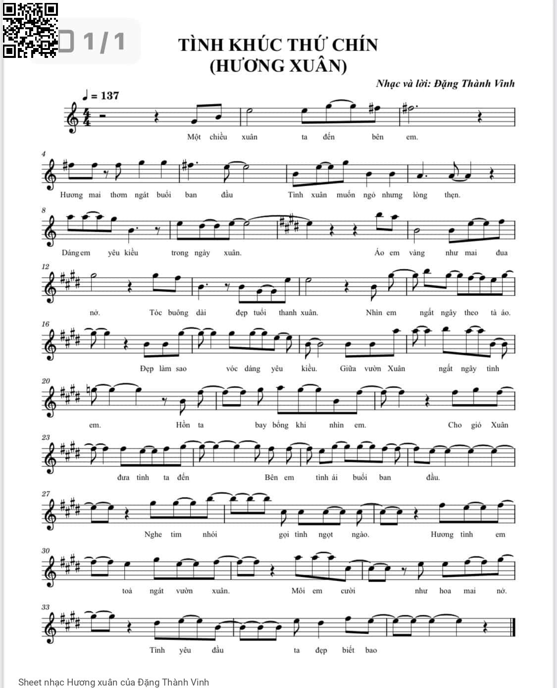 Đặng Thành Vinh Một chiều xuân ta đến bên em Hương mai thơm ngát buổi ban đầu [PDF] [Sheet] [Lyrics] [Mp4/Midi]