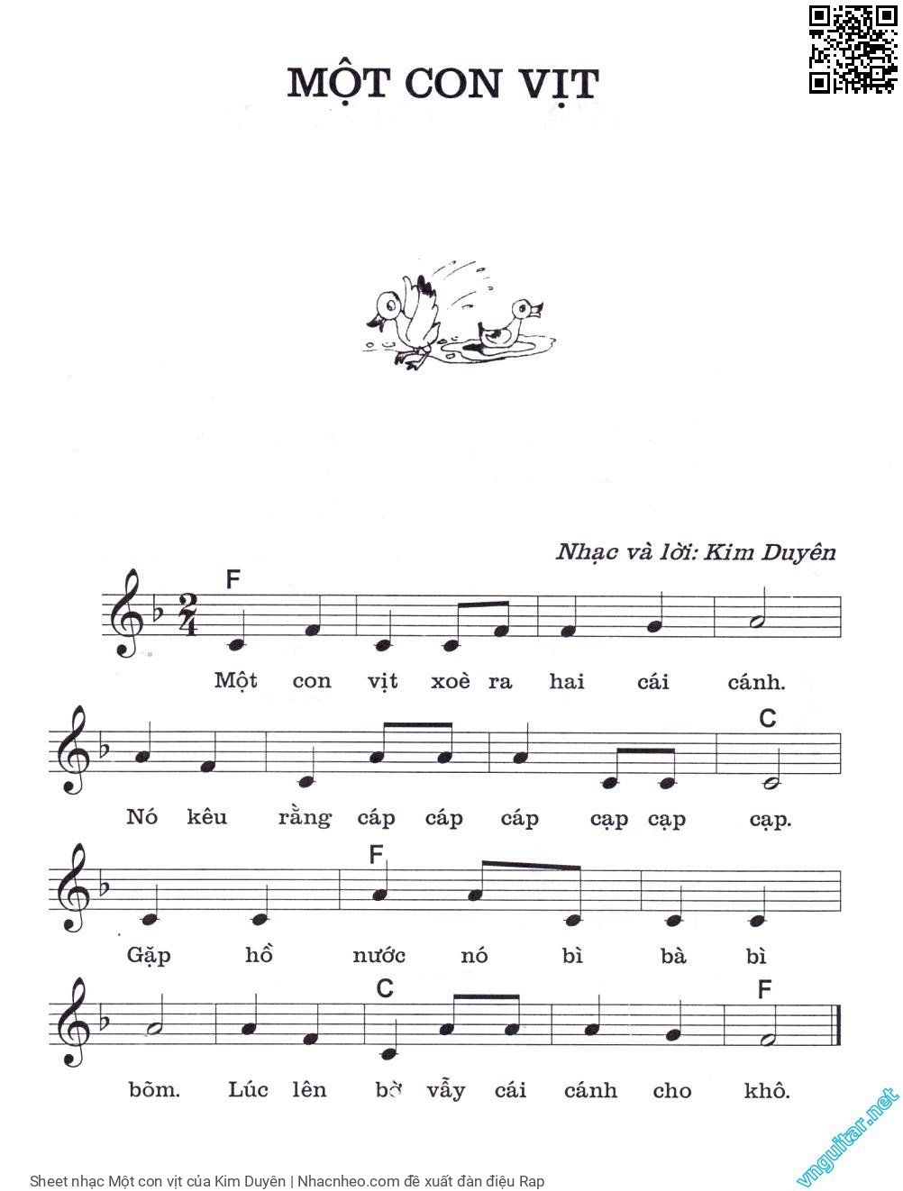 Kim Duyên Một con vịt xoè ra hai cái cánh Nó kêu rằng bắp bắp bắp bặp bặp bặp [PDF] [Sheet] [Lyrics] [Mp4/Midi]