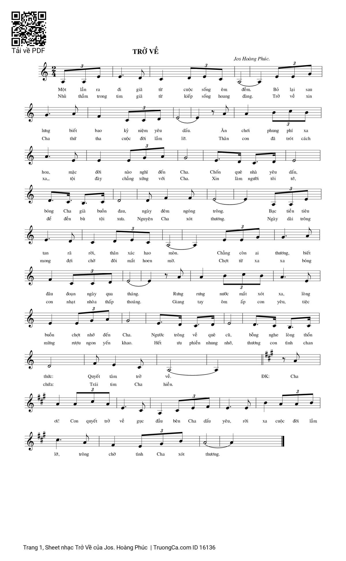 1. Một lần ra đi giã từ cuộc sống êm đềm. Bỏ lại sau lưng biết bao kỷ niệm yêu dấu. Ăn chơi phung phí xa hoa, mặc đời nào nghĩ đến Cha. Chốn quê nhà yêu dấu, bóng Cha già buồn đau, ngày đêm ngóng trông. Bạc tiền tiêu tan rã rời, thân xác hao mòn. Chẳng còn ai thương, biết đâu đoạn ngày qua tháng. Rưng rưng nước mắt xót xa, lòng buồn chợt nhớ đến Cha. Ngước trông về quê cũ, bỗng nghe lòng thổn thức: Quyết tâm trở về.