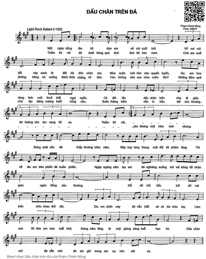 The Videos/audios Dấu chân trên đá by Phạm Chinh Đông were embed from Youtube, Musescore or the other 3rd links. Videos are subject to 3rd's copyright control and may be removed by YouTube's copyright rules and 3rd's policies or maybe included advertisements. If you cannot access to these songs, this mean that have been removed.