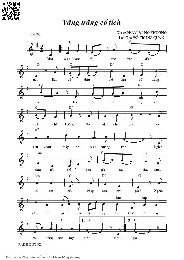 Phạm Đăng Khương Một vầng trăng tỏ treo trên đỉnh trời [PDF] [Sheet] [Lyrics] [Mp4/Midi]