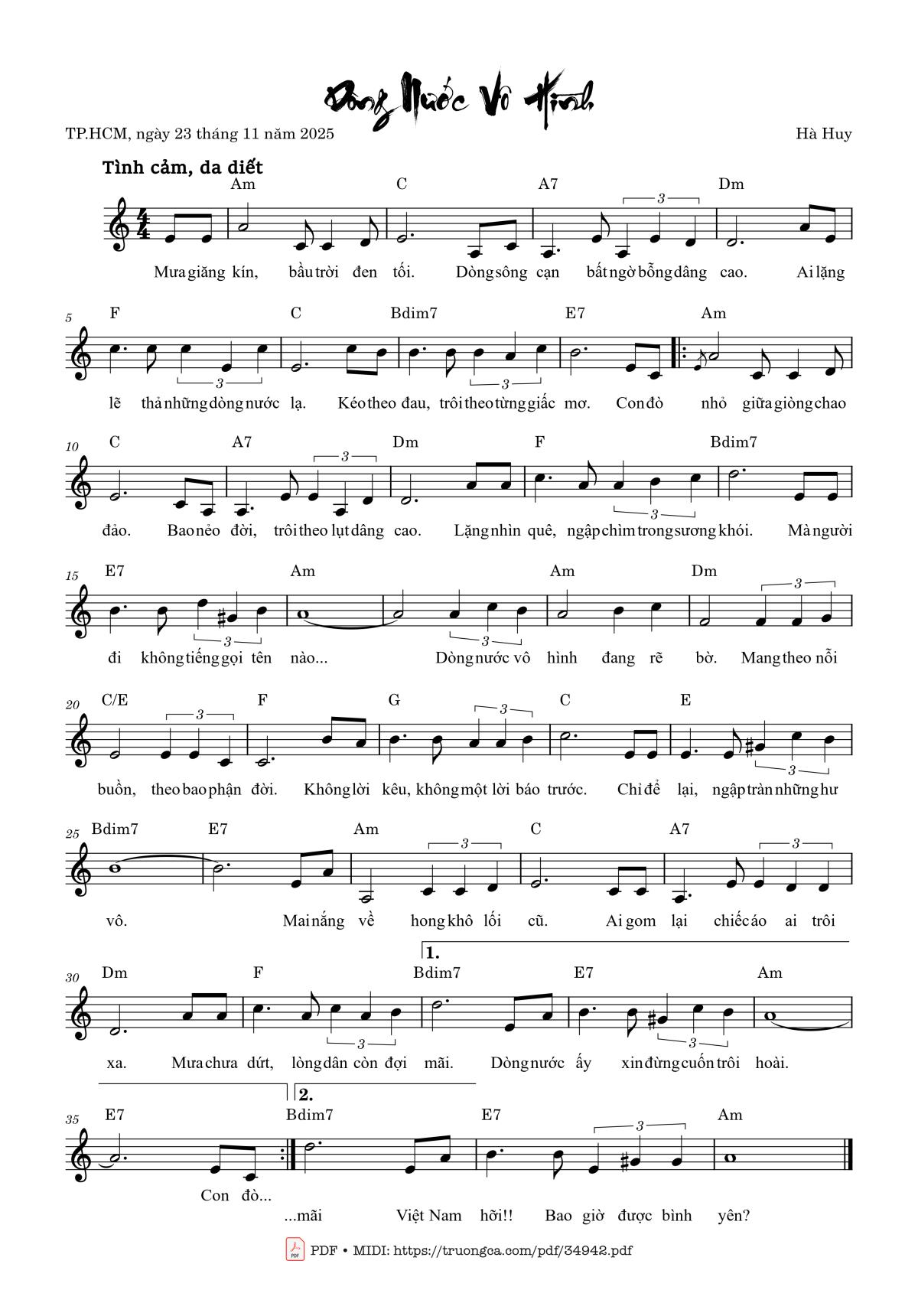 Hà Huy Mưa giăng kín bầu trời đen tối Giòng sông cạn bất ngờ bỗng dâng cao [PDF] [Sheet] [Lyrics] [Mp4/Midi]