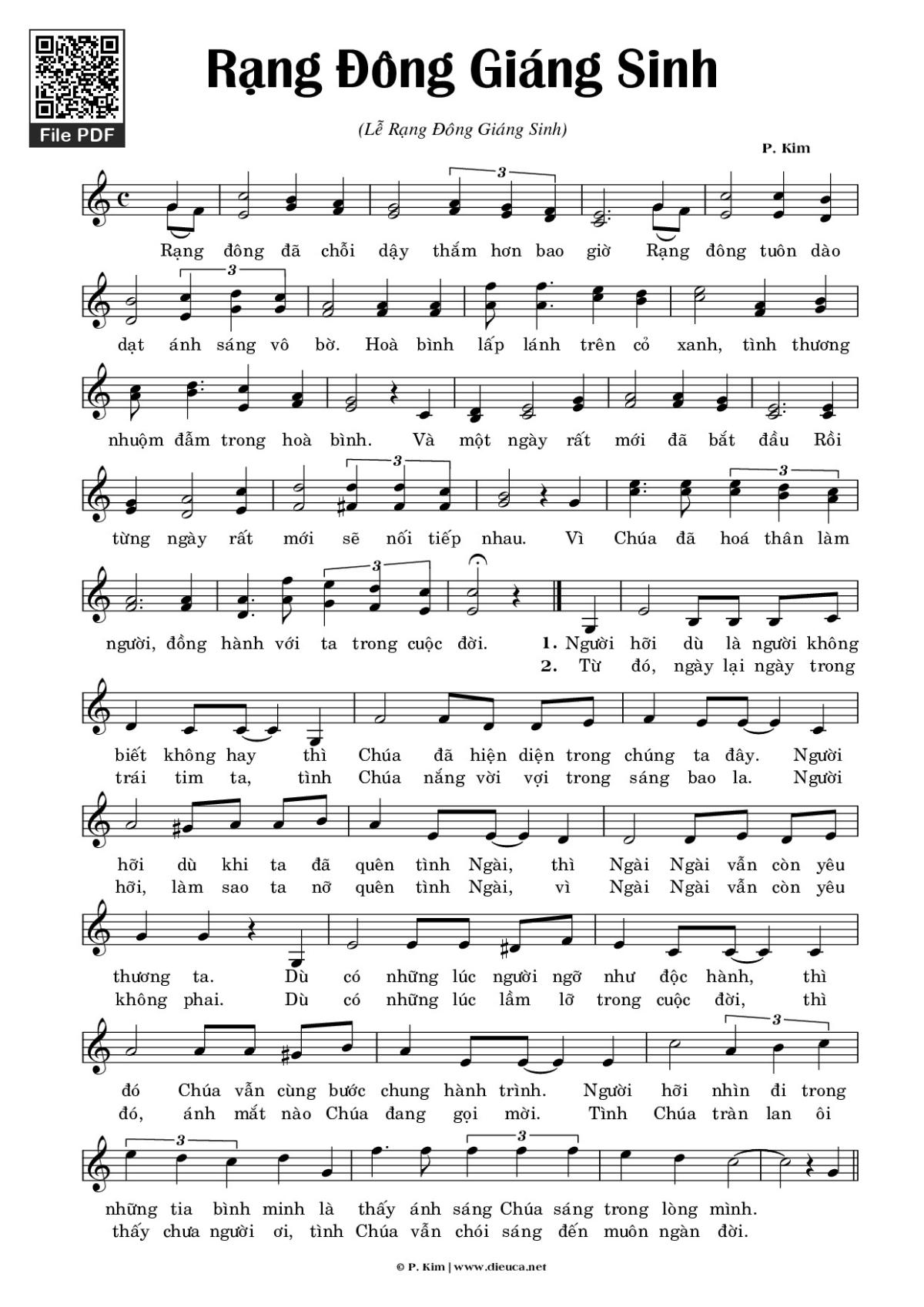 P. Kim Mùa Giáng Sinh Rạng đông đã chỗi dậy thắm hơn bao giờ Rạng đông tuôn dào dạt ánh sáng vô bờ [PDF] [Sheet] [Lyrics] [Mp4/Midi]