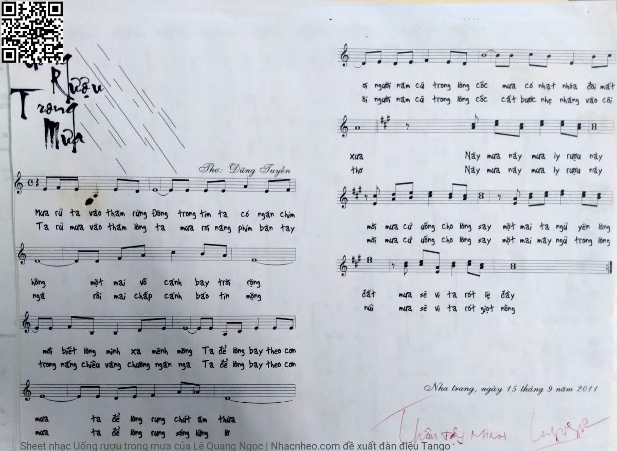 Lê Quang Ngọc Mưa rủ ta vào thăm rừng đông Trong tim ta có ngàn chim hồng [PDF] [Sheet] [Lyrics] [Mp4/Midi]