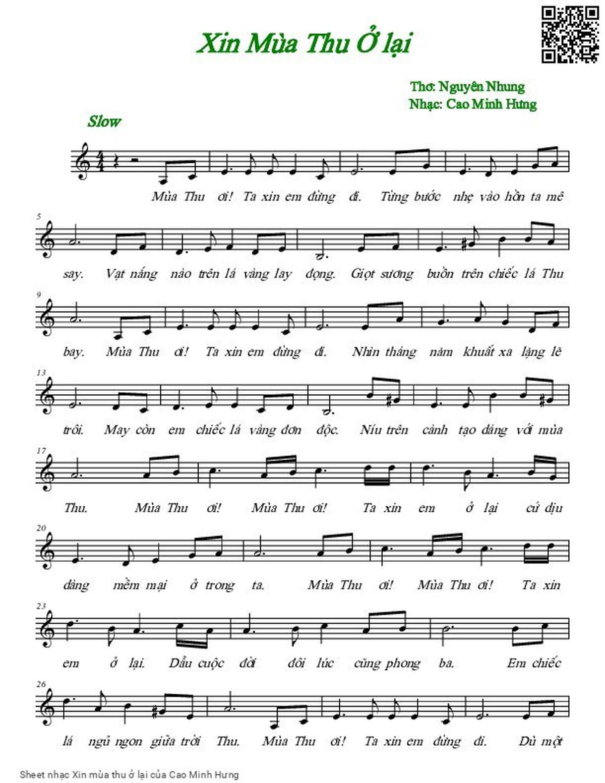 Cao Minh Hưng Mùa Thu ơi Ta xin em đừng đi [PDF] [Sheet] [Lyrics] [Mp4/Midi]