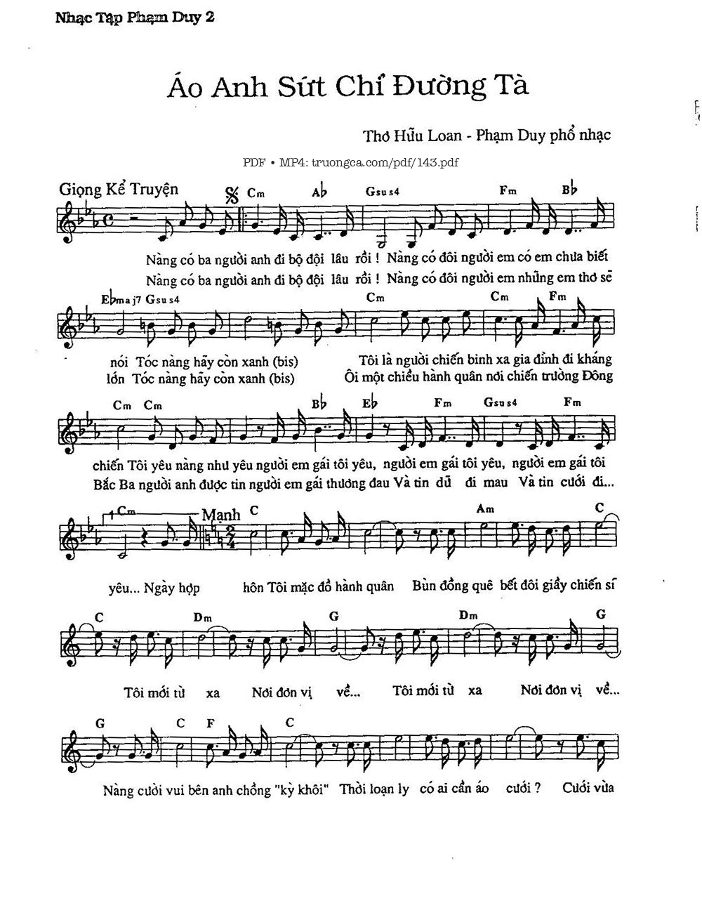 Phạm Duy Nàng có ba người anh đi bộ đội lâu rồi [PDF] [Sheet] [Lyrics] [Mp4/Midi]