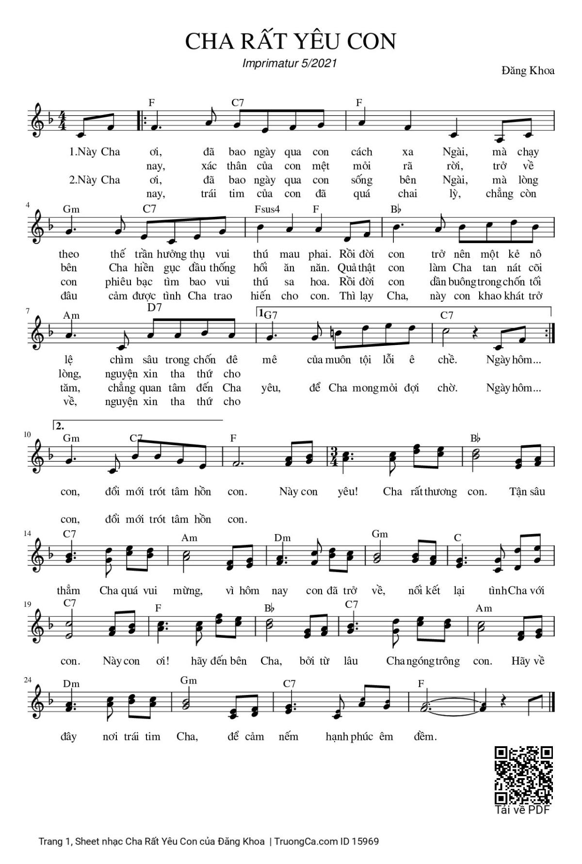 1. Này Cha ơi, đã bao ngày qua con cách xa Ngài, mà chạy theo thế trần hưởng thụ vui thú mau phai. Rồi đời còn trở nên một kẻ nô lệ chìm sâu trong chốn đê mê của muôn tội lỗi ê chề. Ngày hôm nay xác thân của con mệt mỏi rã rời, Trở về bên Cha hiền gục đầu thống hối ăn năn. Quả thật con làm Cha tan nát cõi lòng, nguyện xin tha thứ cho con, đổi mới trót tâm hồn con.