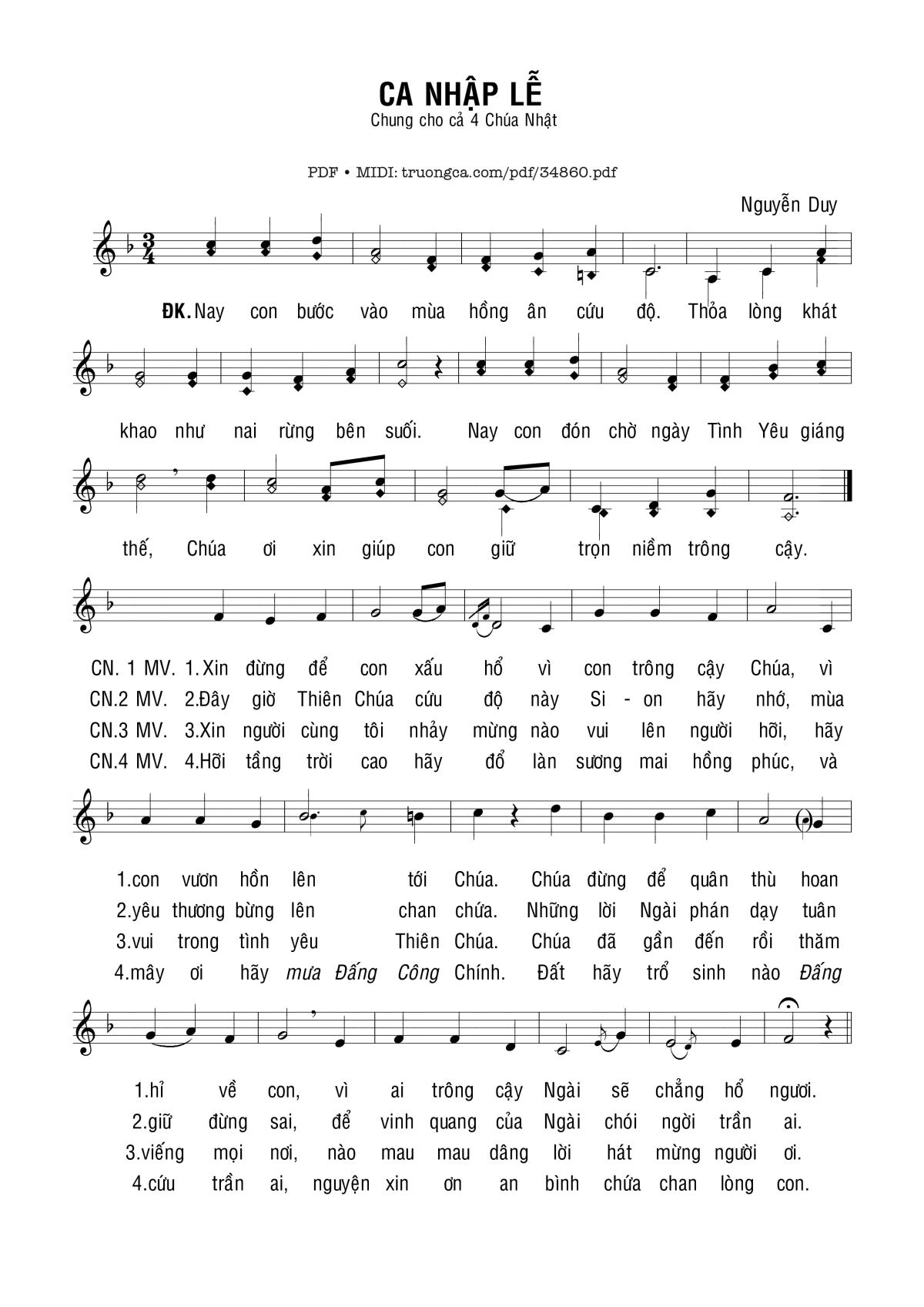 Nguyễn Duy Nay con bước vào hồng ân cứu độ Xin vui lòng khao khát như nai rừng bên trong [PDF] [Sheet] [Lyrics] [Mp4/Midi]