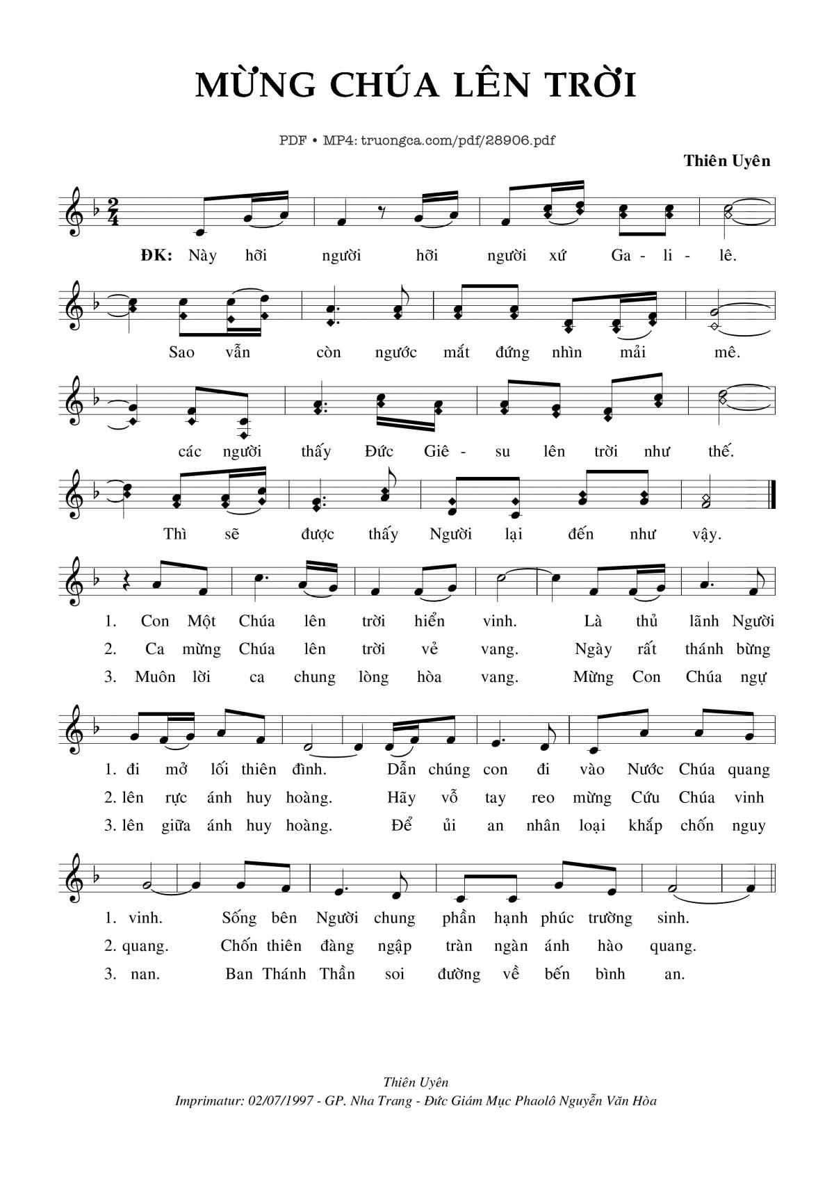 🌾 Imprimatur, Thông tin chuẩn nhận dùng trong phụng vụ Công Giáo: Nhập Lễ – Lễ Thăng Thiên. Imprimatur – Gp. Nha Trang: 02.07.1997