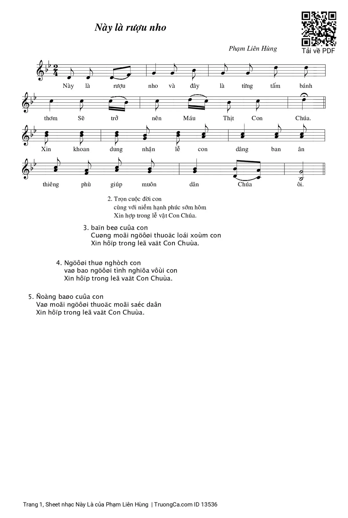 Phạm Liên Hùng Này là rượu nho và đây là từng tấm bánh thơm [PDF] [Sheet] [Lyrics] [Mp4/Midi]