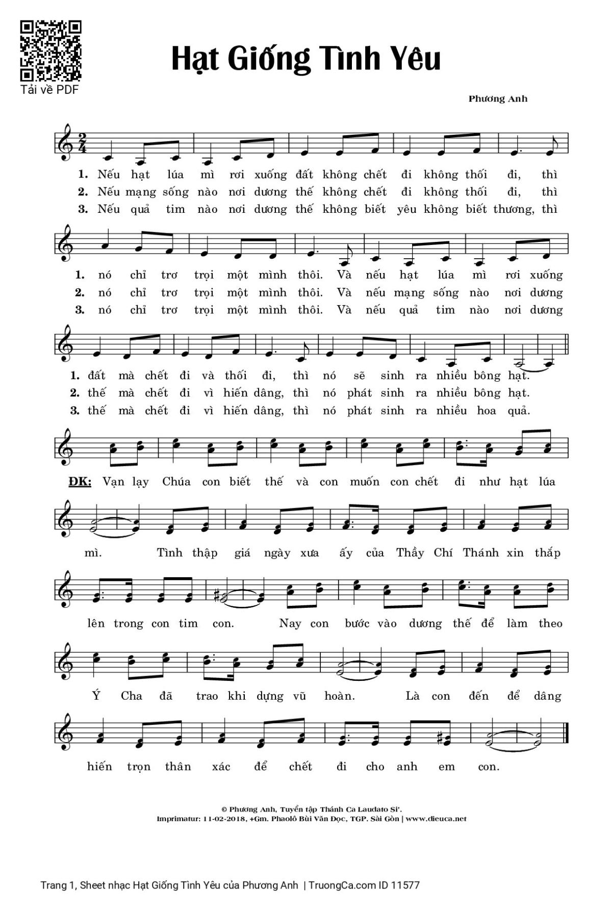 Phương Anh Nếu hạt lúa mì rơi xuống đất không chết đi [PDF] [Sheet] [Lyrics] [Mp4/Midi]
