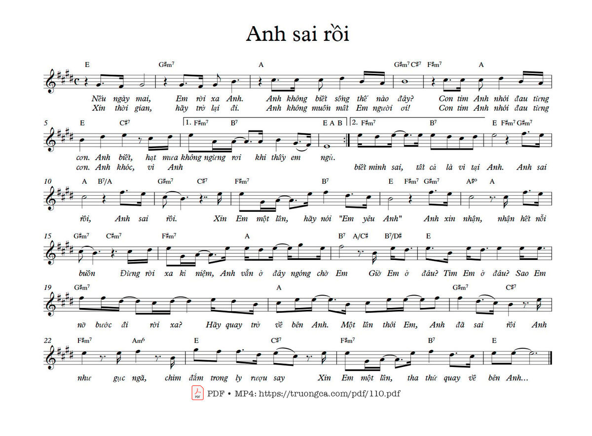 Sơn Tùng M-TP Nếu ngày mai em rời xa anh Anh không biết sống thế nào đây [PDF] [Sheet] [Lyrics] [Mp4/Midi]