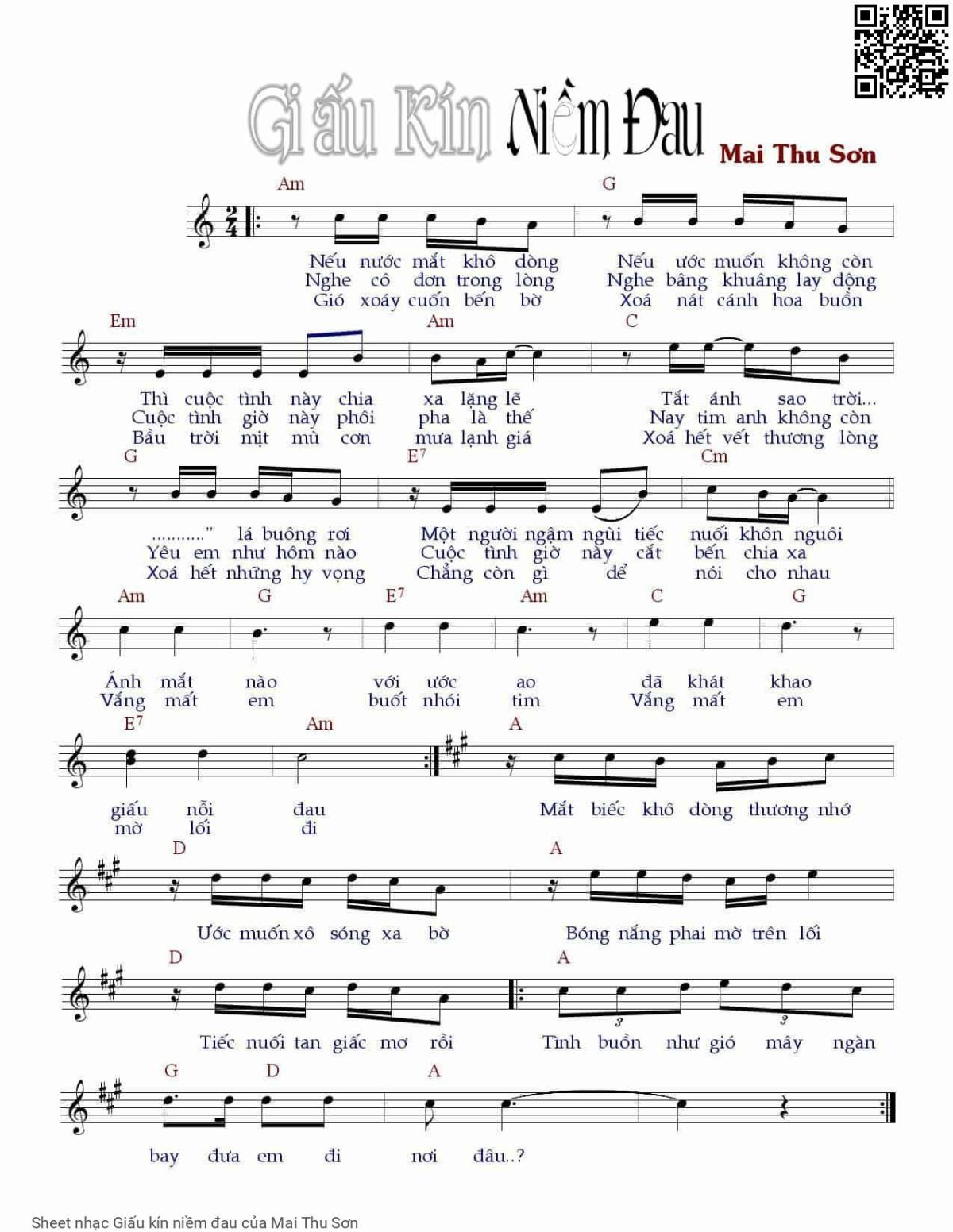 Transposition is the process of moving a song's melody and chords up or down in pitch by a constant interval. The direction of the transposition tool is indicated by a plus (+) sign for up and a minus (-) sign for down. Hover mouse over chords signs to see the chords chart of Giấu kín niềm đau song.