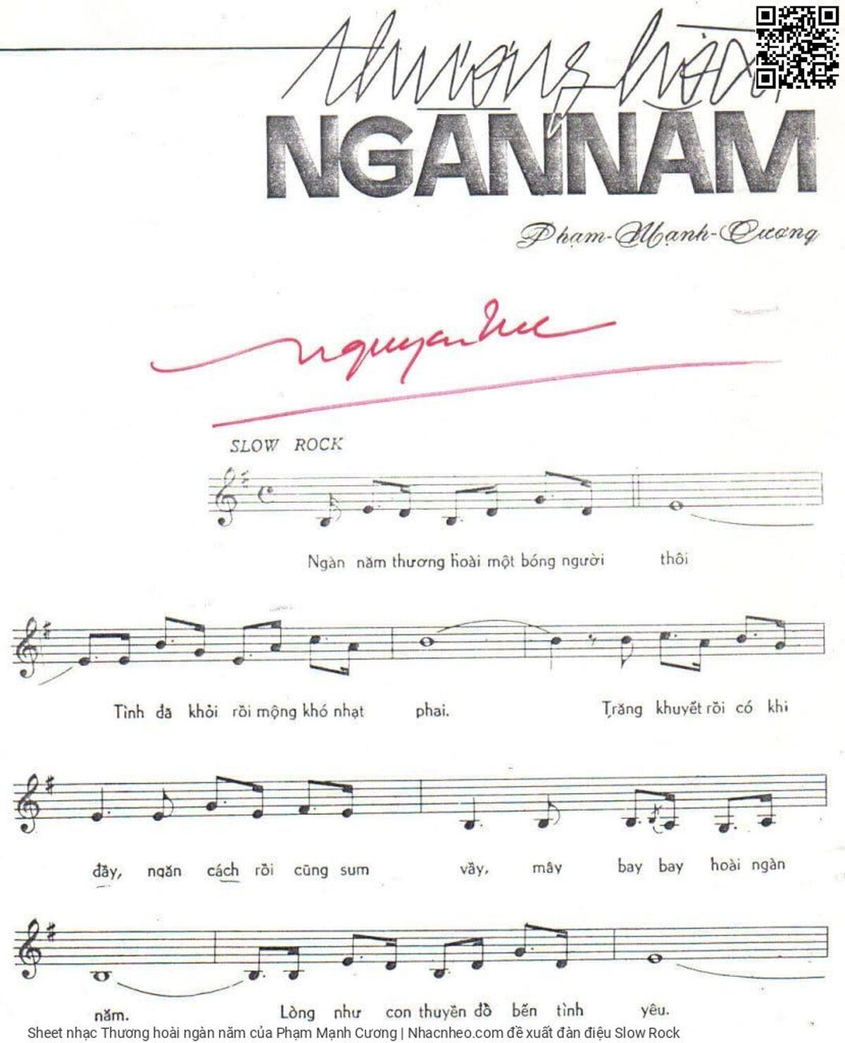 Phạm Mạnh Cương Ngàn năm thương hoài một bóng người thôi [PDF] [Sheet] [Lyrics] [Mp4/Midi] [Story and comment]